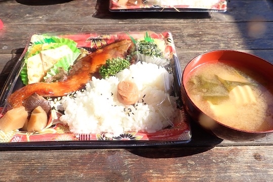 ショップに戻ってお弁当とあったかいお味噌汁!