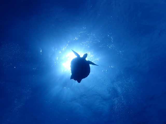 逆光のカメさん撮影!