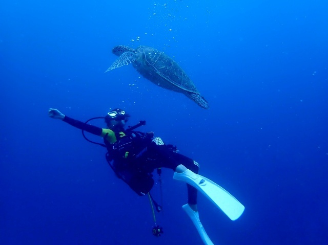 ブログにアップしてなかった、初日に出会ったアオウミガメ